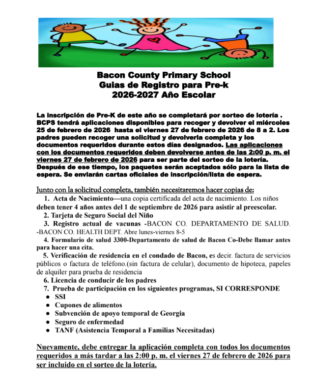 Pre-K Registration 2026-2027