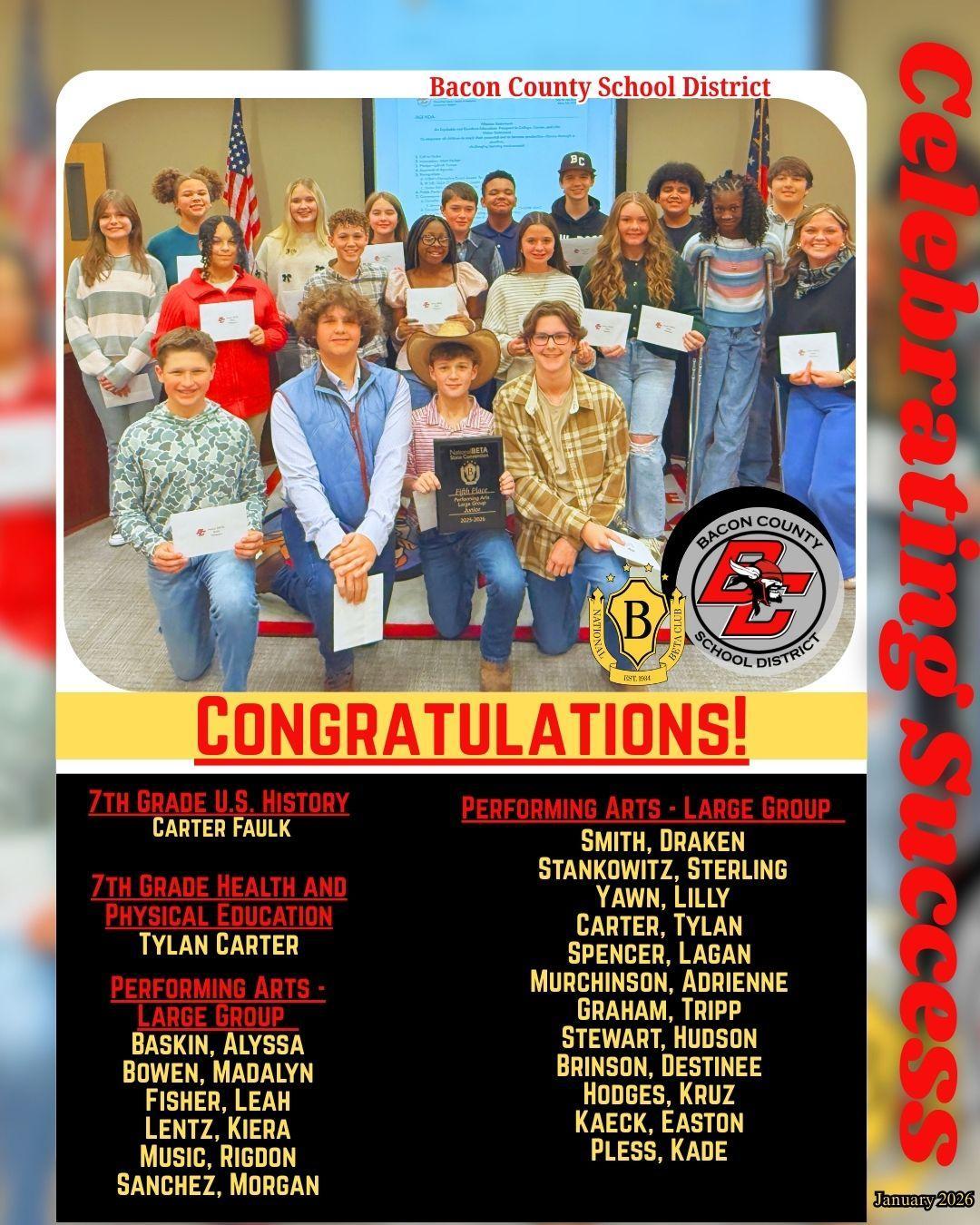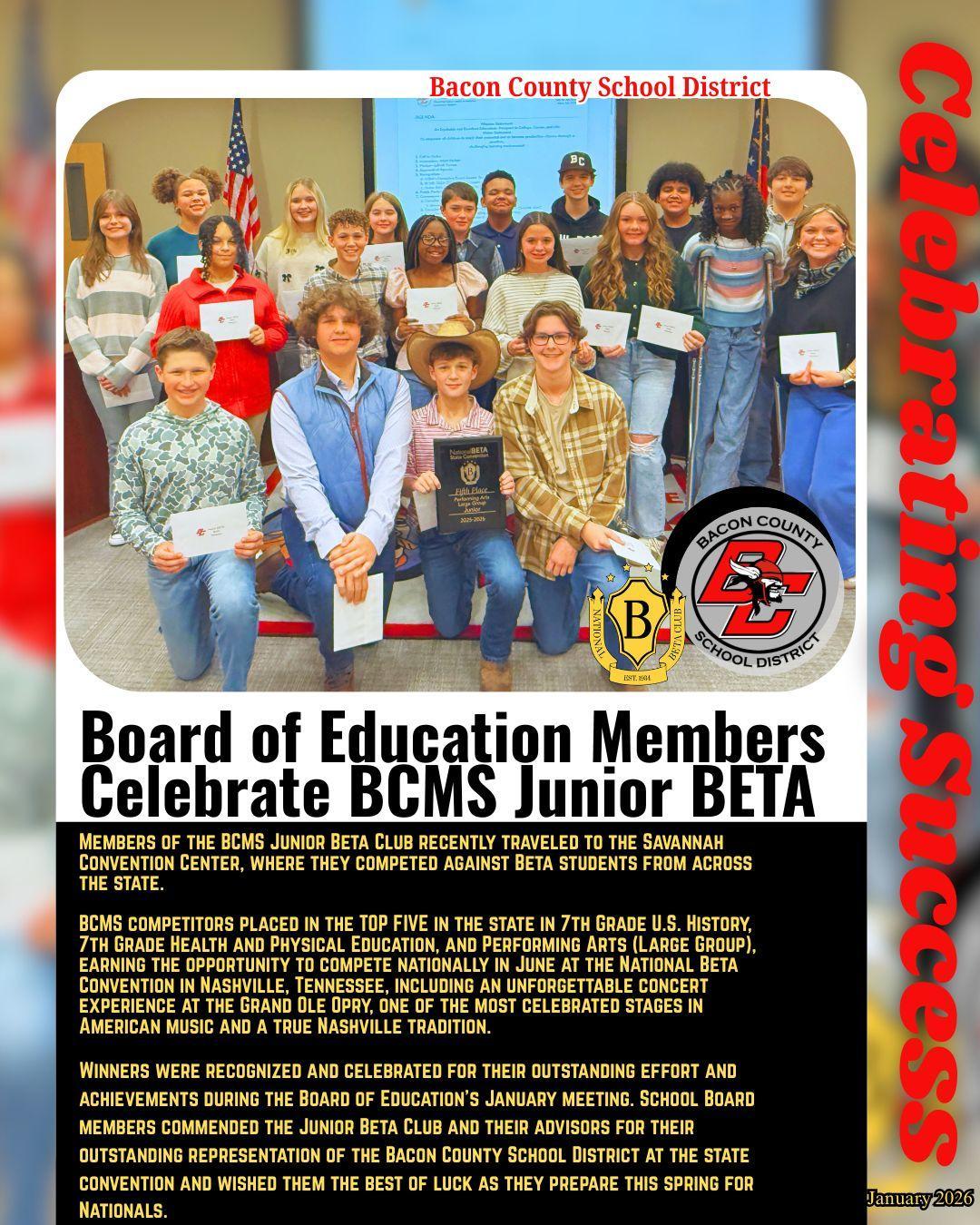 School Board Members Celebrate Success by BCMS Junior Beta
