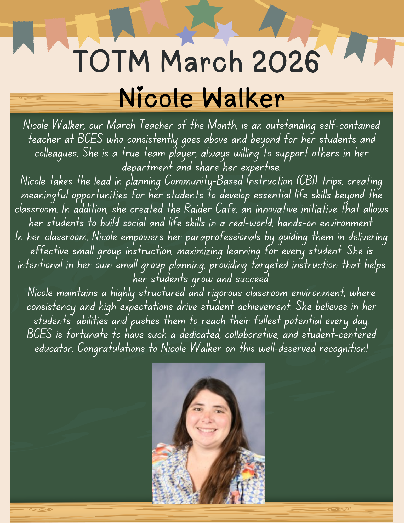 BCES Teacher of the Month of March