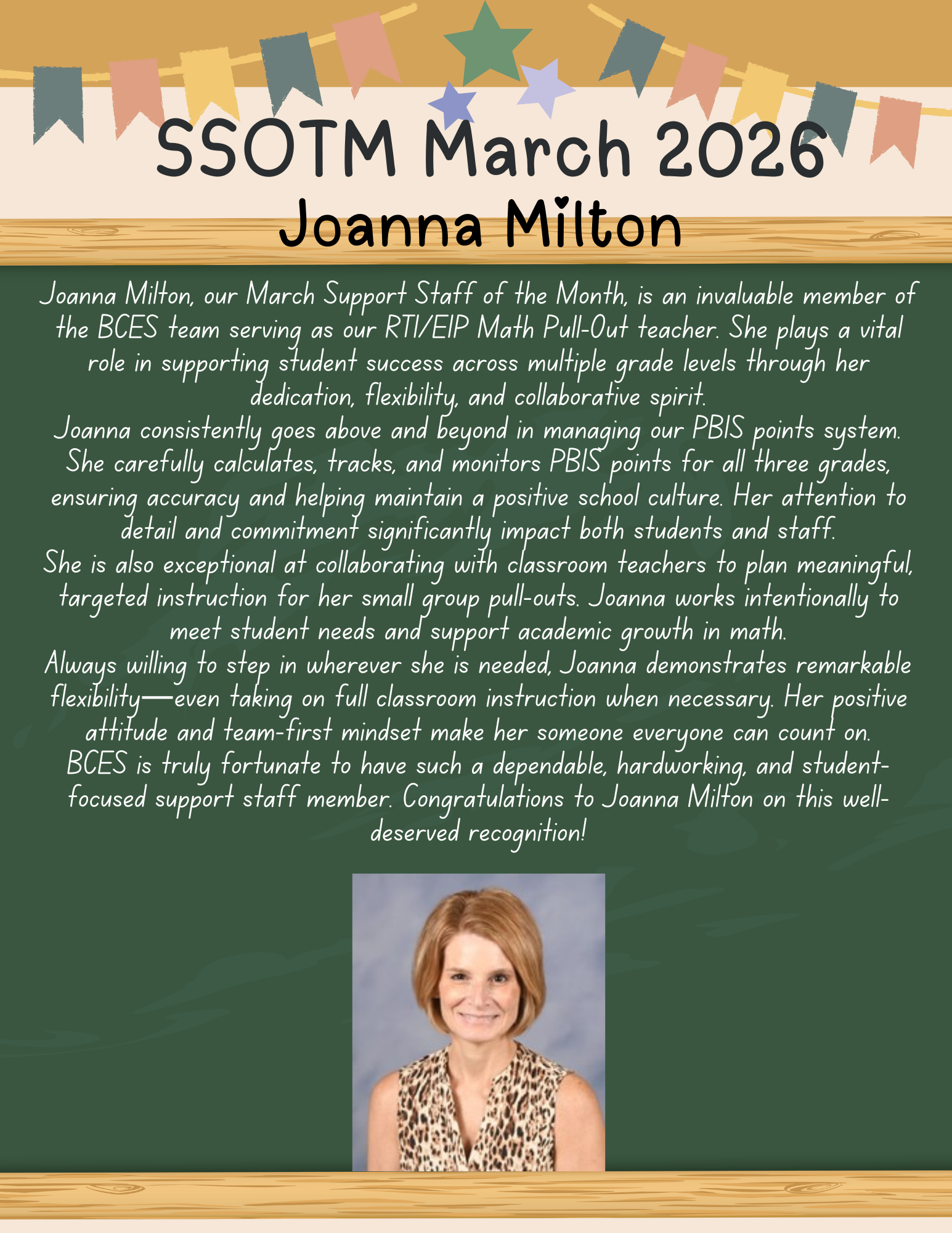 BCES Support Staff of the Month of March
