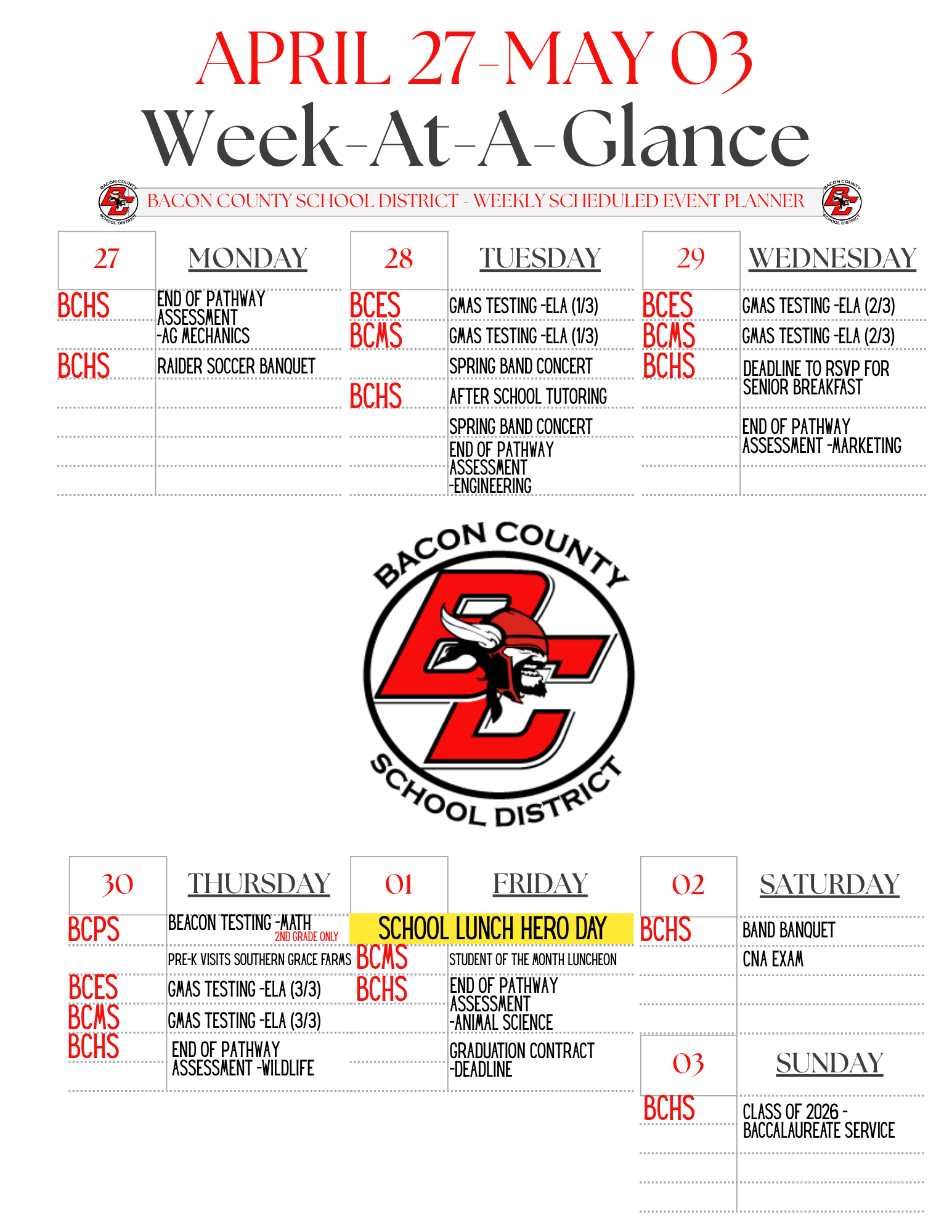 Bacon County School District's - Week-At-A-Glance