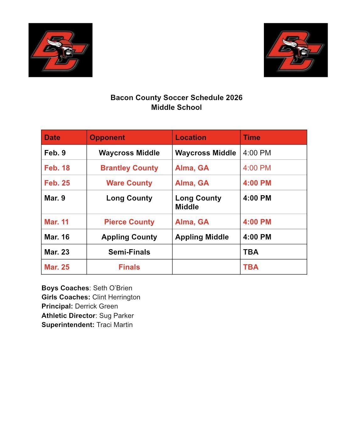 BCMS Red Raiders & Lady Raiders Season Schedules